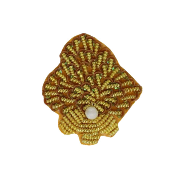 Aufwändig gearbeitete Applikation als Blatt mit Pailetten und Bouilliondraht und einer Wachsperle. Das Blatt ist zum Verzieren von Fasching- und Tanzkostümen, Taschen ideal.