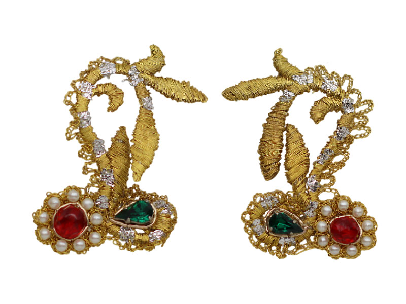 Aufwändig gearbeitete Ornament Applikation mit verschiedenen Strasssteinen, Perlen und Bouillondraht gefertigt. Das Ornament ist zum Verzieren von Fasching- und Tanzkostümen, Taschen ideal.