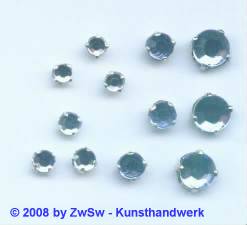 Gefasste Aufnähsteine / Strassteine aus Glas, zum Annähen oder Aufnähen, haben eine Metallfassung mit 4 Bohrungen zum sicheren Annähen an Textilien, Taschen, Schuhen und Accessoires. Eingefasste Strasssteine sind bei der Herstellung von Modeschmuck sowie glitzernden Dekorationen und Bastelobjekte beliebt.
