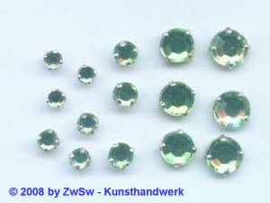 Gefasste Aufnähsteine / Strassteine aus Glas, zum Annähen oder Aufnähen, haben eine Metallfassung mit 4 Bohrungen zum sicheren Annähen an Textilien, Taschen, Schuhen und Accessoires. Eingefasste Strasssteine sind bei der Herstellung von Modeschmuck sowie glitzernden Dekorationen und Bastelobjekte beliebt.