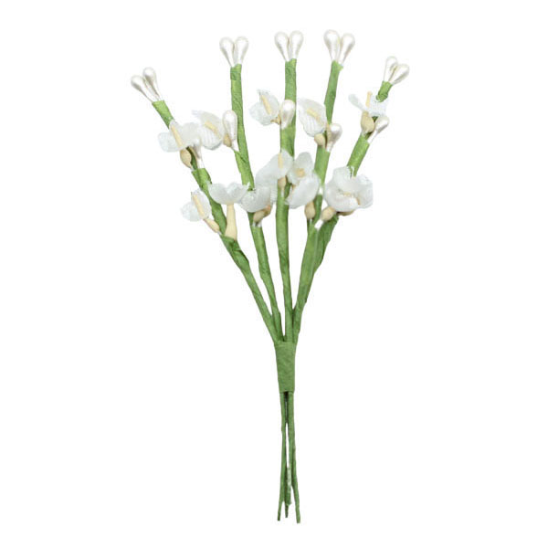 Blüten-Perl-Rispen mit Knospen und feiner zarter Blüte auf Papier umwickeltem Drahtstiel eignen sich hervorragend für Bastelarbeiten und können als stilvolle Arrangement für Gestecke und Kränze beliebig verwendet werden. Die Blüten-Perl-Rispen lassen sich für traditionelle Hochzeitsanstecker - Hochzeitsbüscherl prima mit vielen anderen Materialien kombinieren