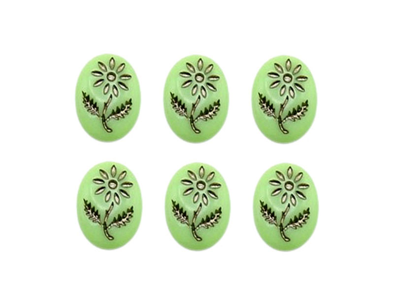 Cabochon Motive "Blume" aus Glas mit eingebrannter Blume verziert, unten flach, oben gewölbt. Mit der glatten Klebefläche können die Motiv-Cabochon in einer passenden Fassung oder auf eine glatte Oberfläche geklebt werden. Die kleinen Blumen Motivcabochons sind ideal um Retro Schmuck zu fertigen. Zum Basteln, Verzieren und Dekorieren sind die zierlichen Vintage Glas Cabochon eine tolle Ergänzung und Verschönern Bastelobjekten wie Windlichter, Miniaturbilder und vieles mehr.