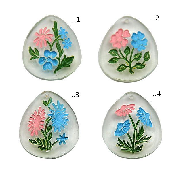 Die Deko Anhänger in Tropfenform sind aus Glas, haben eine schöne Blume in der Mitte und sind mit einer Bohrung zum Aufhängen versehen. Diese wunderschönen Glas Anhänger eignet sich für trendige Fensterdekoration, Schlüsselanhänger und als Bastel- und Dekorationsartikel, sowie für Trachtenschmuck.