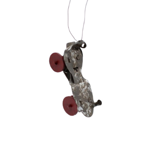 Deko Rollschuh aus Weißblech und roten Rollen. Weihnachtsanhänger als Baumschmuck. Der Rollschuh ist in der Größe verstellbar von 6 cm bis 8,5 cm. Dazu auf der Unterseite die Federklammer lösen, Größe einstellen und Federklammer wieder zudrücken.