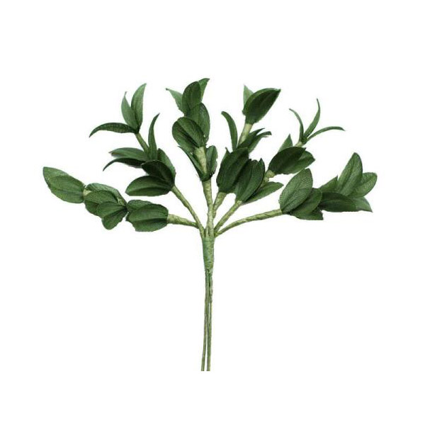 Deko Ruscus Zweige künstlich bestehend aus 3 x 3 grünen Blätter je Zweig. Die Zweige sind für festliche Dekorationen, Bastelideen oder zum Einarbeiten in Gestecke prima geeignet.