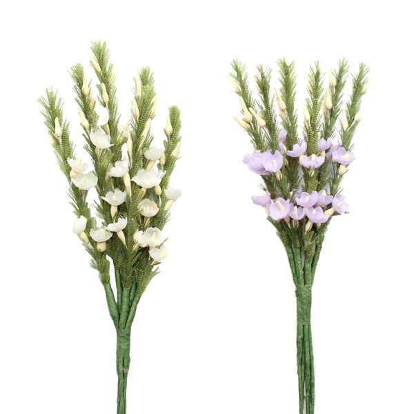 Erikablüte mit Laub, Kunstblume, 2 Farben, Ø6mm, 6 Stiele