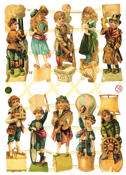 Glanzbilder "Alte Berufsstände in typischer Arbeitstracht" nostalgisch schön sind vielfältig einsetzbar. Ob Einladungen, kleine Namensschilder oder Tischkarten, mit diesen Poesiealbum-Bildern lassen sich viele Bastelobjekte und Dekorationen liebevoll gestalten. Glanzbilder zum Sammeln, Basteln und Dekorieren. In einer Variante sind die Glanzbilder mit silberfarbenen Glitter (Glitzer) versehen.