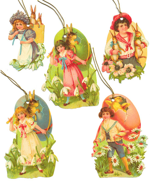 Die Glanzbilder Geschenkeanhänger „Ostern“ aus dickem Prägepapier bieten auf der Rückseite viel Platz für persönliche Mitteilung an den Beschenkten. Die Geschenkeanhänger wirken auch am Osterstrauch. Jeder Anhänger ist mit einem goldfarbenen Band versehen.