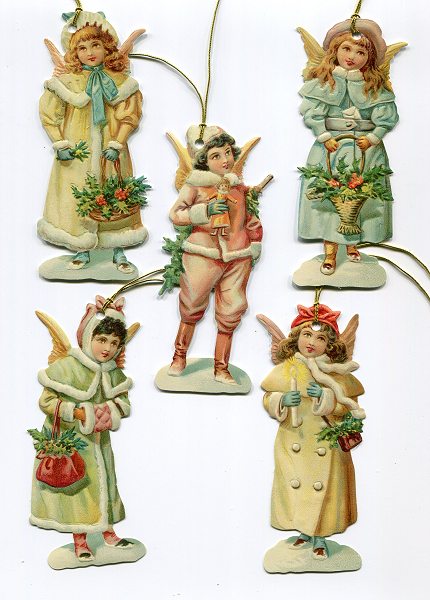 Glanzbilder Geschenkeanhänger "Winterengel“ aus dickem Prägepapier bieten auf der Rückseite viel Platz für persönliche Mitteilung an den Beschenkten. Jeder Anhänger ist mit einem goldfarbenen Band versehen. Und nachdem er seine Pflichten erfüllt hat, freut er sich, über ein kleines Plätzchen am Weihnachtsbaum.