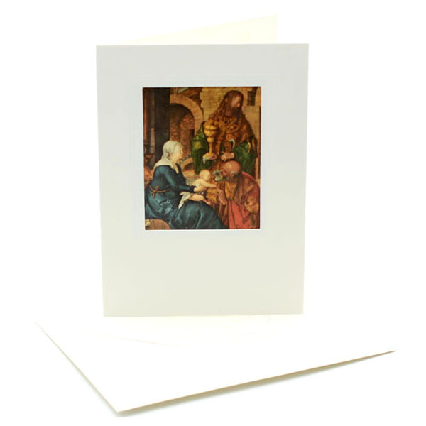 Wunderschöne Klappkarte mit aufgeklebeten Seidenbild Motiv "Die Anbetung der Heiligen Drei Könige" DÜRER (1471-1528) Firenze - Galleria degli Uffizi auf der Vorderseite. Die blanko Innenseiten lassen sich wunderbar beschreiben. Unsere Seidenbild Klappkarten mit passendem Kuvert sind perfekt um Weihnachtsgrüsse an Familie, Freunde und Firmenkunden zu versenden. Nie wieder langweilige Grußkarten zum Sammeln, Verschicken, als Geschenkkarte oder für den wahren Postcrossing-Fan. Die Seidenbilder Klappkarten wurden in den 1990 Jahren oder früher hergestellt und sind echte Vintage Sammlerstücke.
