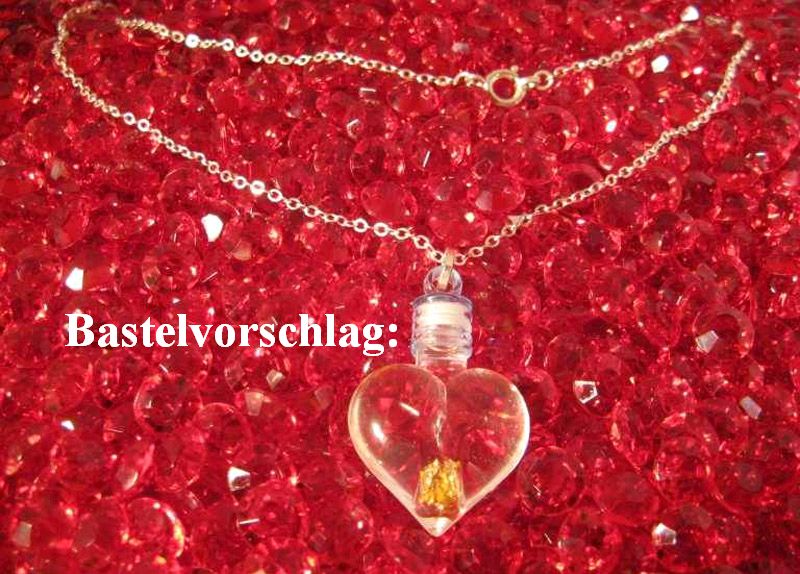 Der Megacoole Herzanhänger ist eine Sonderanfertigung aus Acryl. Das Set besteht aus einem Herz mit einem mittigen Hohlraum sowie Verschluss, einer Öse und einer silberfarbenen Kette. Sie möchten den Herzanhänger gerne mit etwas ganz persönlichem füllen? Dieses romantischen Herz mit Verschluss eignen sich für die verschiedensten DIY Schmuck Projekte. Die Herz Flasche gefüllt mit einem Stück Blattgold, Sand, Blumen, Perlen und somit kreieren sie individuelle Schmuckstücke.
