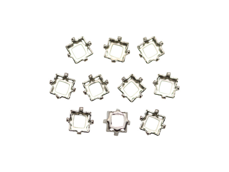 Diese quadratische Steinfassung ist eine Kesselfassung mit offener Rückseite zum Aufnähen und ist vielseitig einsetzbar für Textilienveredelung, Modeschmuck, Hundehalsbänder…