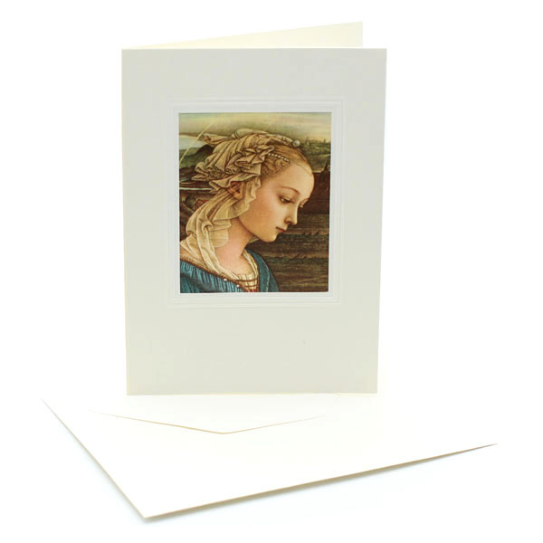 Wunderschöne Klappkarte bestehend aus einem hochwertig, gedruckten Seidenbild "Madonna" FIILIPPO LIPPI (1406-1469) Firenze-Galleria degli Uffizi auf einer creme weissen Passepartout-Klappkarte mit rechteckigem Ausschnitt (6,5 x 8,5 cm) in schöner Prägung. Unsere Seidenbild Klappkarte ist für liebe Grüsse an Familie und Freunde oder als schöne Beigabe zu besonderen Geschenken. Die Seidenbild Klappkarten sind pure Nostalgie und beliebte Sammlerstücke. Dieses Klappkarten Set wurde Anfange der 1990 oder früher hergestellt.