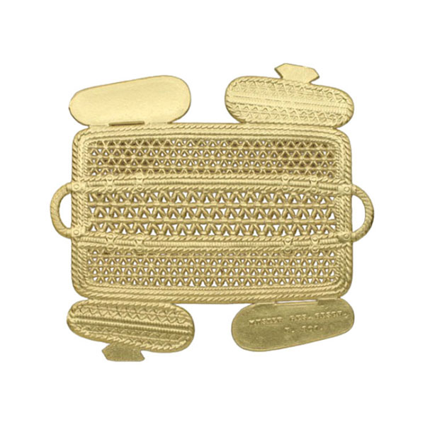 Material: gestanztes, beidseitig geprägtes Papier/Pappe/Karton mit Aluminiumfolie kaschiert
