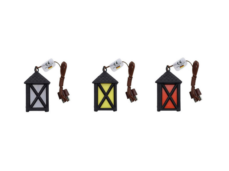 Laterne mit LED aus Kunststoff gefertigt ist für die Beleuchtung eines Krippenstalls oder Miniaturbauernhofs bestens geeignet und sorgt für eine gemütliche Atmosphäre in jeder Krippenlandschaft. Modellbauer werden Ihre Freude daran haben. Sie können zwischen weissen, gelben und roten Scheiben wählen. Die LED sind nicht austauschbar. Die Laterne wird mit einem ca. 30 cm langen Kabel und Stecker geliefert. Zum Betrieb der Kunststofflaterne empfehlen wir einen Krippentrafos - alternativ eine Flach/Block-Batterie und Batteriekappe oder Batteriebox und Batteriekappe.
