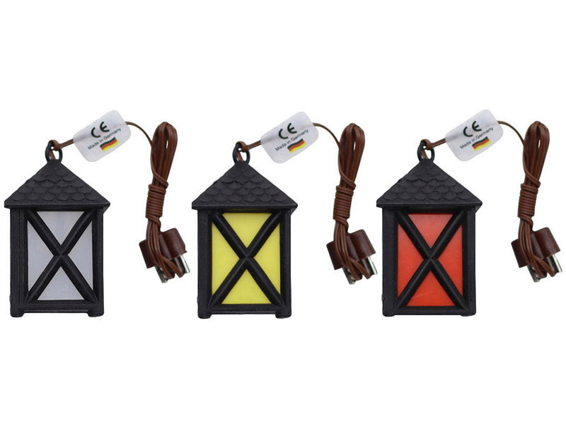 Laterne mit LED aus Kunststoff gefertigt ist für die Beleuchtung eines Krippenstalls oder Miniaturbauernhofs bestens geeignet und sorgt für eine gemütliche Atmosphäre in jeder Krippenlandschaft. Modellbauer werden Ihre Freude daran haben. Sie können zwischen weissen, gelben und roten Scheiben wählen. Die LED sind nicht austauschbar. Die Laterne wird mit einem ca. 30 cm langen Kabel und Stecker geliefert. Zum Betrieb der Kunststofflaterne empfehlen wir einen Krippentrafos - alternativ eine Flach/Block-Batterie und Batteriekappe oder Batteriebox und Batteriekappe.