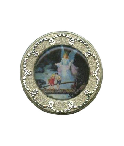 Magnetplakette "Schutzengel" kann mit dem Magneten auf Metall angebracht und/oder mit Klebefolie (enthalten) auch geklebt werden. Die runde Magnet Pin Plakette zeigt einen Schutzengel, der über zwei kleine Kinder wacht. Die schwankende Hängebrücke symbolisiert dabei die vielfältigen Risiken des Lebens.