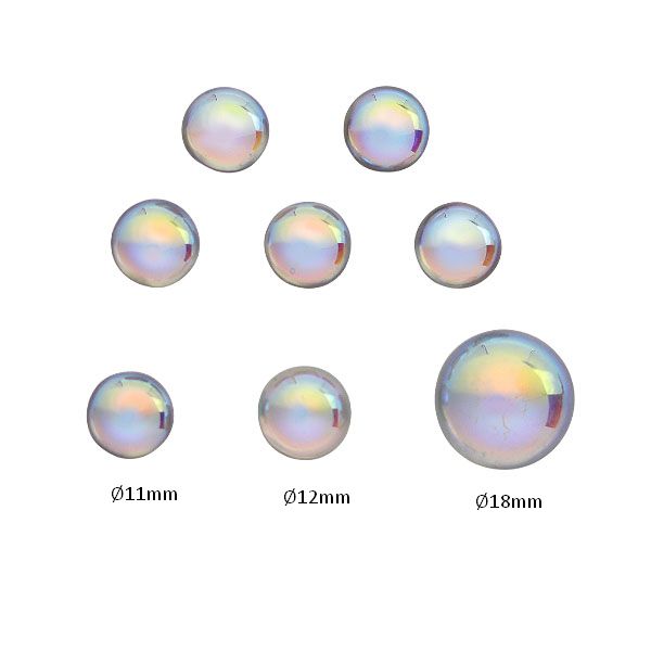 Runde Muggelsteine aus Glas mit einer flachen Unterseite zum Aufkleben und Einfassen. Muggelsteine / Cabochon Rund sind ein tolles Ausgangsmaterial um gewöhnlich Gegenstände mit den funkelnden Bastelsteinen zu verschönern. Als Streuteile sind die Glassteine für viele Anlässe und Feste eine glitzernde Dekoration. Für eigene Schmuckherstellung sind die Cabochon zum Einfassen von prima geeignet. Muggelsteine sind ein idealer Bastelartikel, die auf vielfältige Untergründe aufgeklebt oder mit Klebepads aufgebracht werden können.
