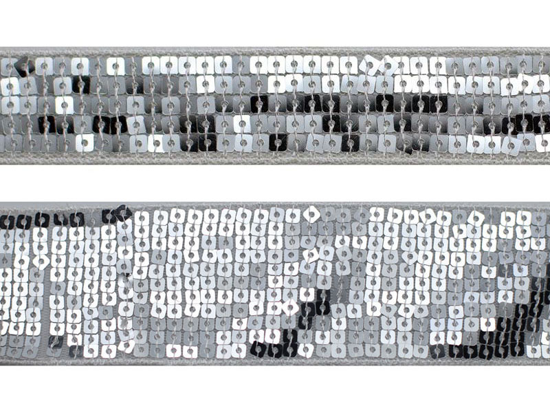 Paillettenborte Farbe silber, das besondere an dieser Borte ist, dass hier quadratische Pailletten verwendet wurden zum Verzieren von Bauchtanz-, Faschingskostüme.