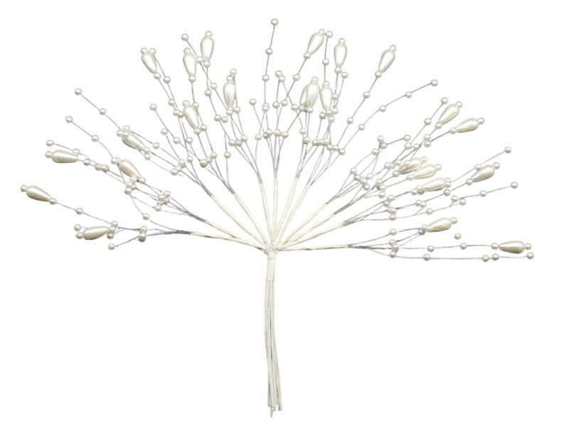 Perlenrispen mit runden und ovalen Perlen zum Verzieren von Hochsteckfrisuren als Haarschmuck für Hochzeit, Tracht, Kommunion. Der Perlenstrang als Tischschmuck auf einer Hochzeitstafel, einem festlichen Dinner, einem romantischem Abendessen, als Verzierung am Streukörbchen und Antennenschmuck.
