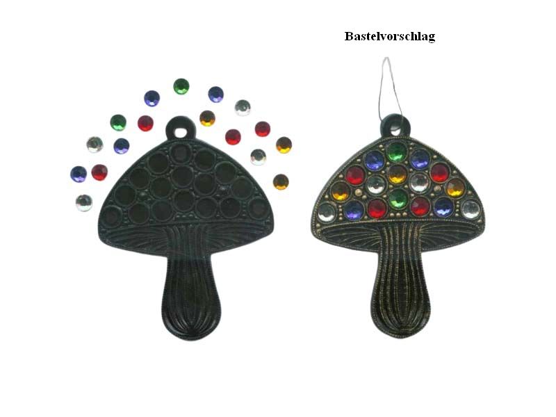 Bastelset "Deko-Anhänger Pilz" mit Strasssteine sorgt immer für funkelnde Akzente. Der selbst gefertigten Deko-Anhänger Pilz wirkt ganz besonders schön als Fensterdekoration oder Geschenkanhänger, nicht nur für den Herbst. Auch als Gastgeschenk kommt dieser funkelnder Pilz gut zur Geltung. Die Strasssteine in die bereits vorgegebenen Vertiefungen kleben, Aufhängband anbringen - fertig!