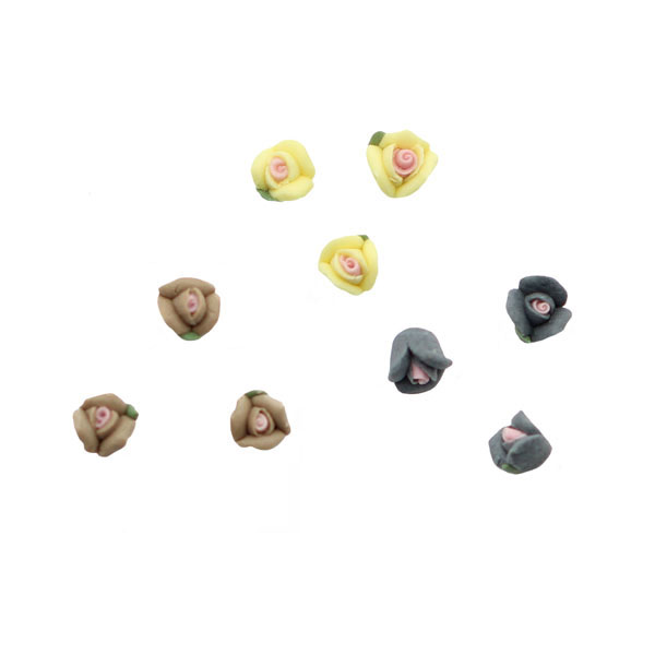 Röschen Mini aus Ton, handgefertig die Größen variieren geringfügig, Rückseite flach, zum Verzieren von Ministräußchen für Puppenstuben, Krippen und vielem mehr.