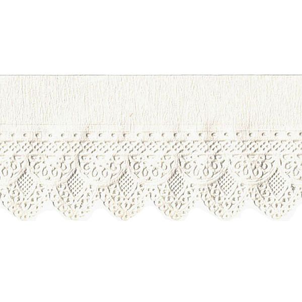Diese Schachtelborte/Schrankborte krepp antik mit attraktivem Spitzeneffekt wurde anfang der 50er Jahre hergestellt. Diese Spitzenborte aus Papier lässt sich in vielen Bereichen einsetzen, z.B. als Verzierung von Schachteln und Schmuckkarten und vielen mehr.