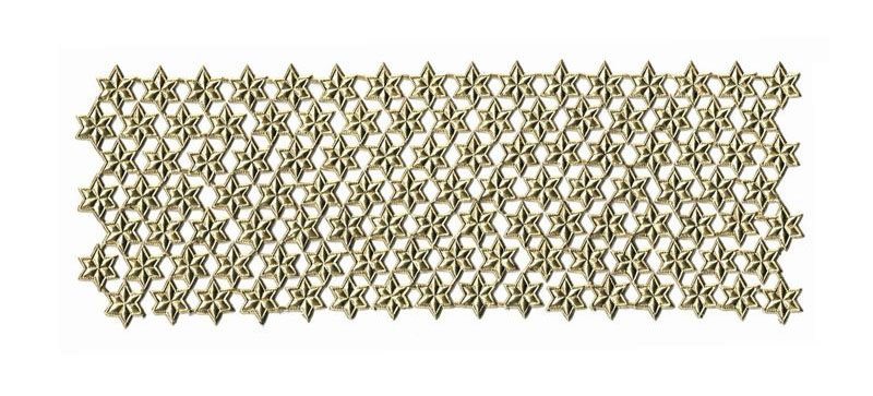 Material: gestanzte, geprägte Pappe/Karton/Papier beidseitig mit goldfarbiger Aluminiumfolie kaschiert