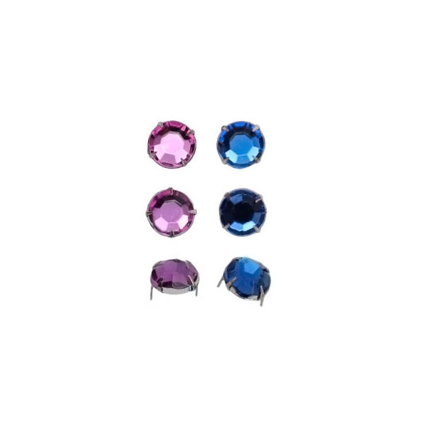Strass Splintnieten bestehend aus einem eingepassten Stassstein und einer Splintfassung. Strass Splintnieten eignen sich gut zum Verzieren von Kleidung oder Accessoires, Lederjacken, Taschen, Schuhen und Hundehalsbändern. Das Befestigen der Ziernieten gestaltet sich hierbei sehr leicht, die Zacken der Splintnieten durch das jeweilige Material drücken (eventuell vorstechen) . Anschließend müssen die Splinte auf der Rückseite nur noch umgebogen werden. Es ist kein spezielles Werkzeug nötig. Diese Fassung kann auch verlötet werden.