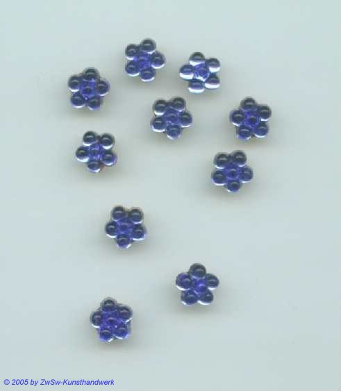 Strassstein, Blümchenform, Farbe blau, Glas, Ø 7mm, 10 Stück