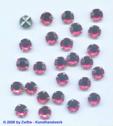 Strasssteine Rund gefasst, Farbe pink, Ø 7mm, 5 Stück
