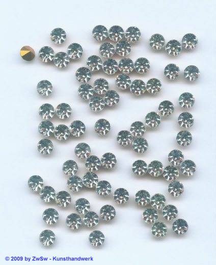 Swarovski® - Chaton Strasssteine mit einer spitzen Unterseite zum Einfassen und Einkleben. Der konische Strassstein ist auf der Unterseite mit einer goldfarbenen Folie überzogen, die dem Stein erst die Tiefe verleiht. Die Steine sind für Vertiefungen oder Schmuckkessel geeignet und können mittels einem Schmucksteinkleber eingeklebt werden. Die Strasssteine mit verschiedenen Materialien kombinieren, sehen als Anhänger für Ketten und Schnüre von Modeschmuck oder zum Ausbessern, zum Verzieren und Dekorieren sowie als Zubehör für Klosterarbeiten edel aus.
